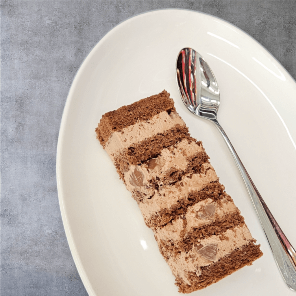 Eine verführerische Schoggi-Crème auf Schokoladenbiscuit mit Schoggidrops verleiht diesem Aroma das gewisse Etwas.